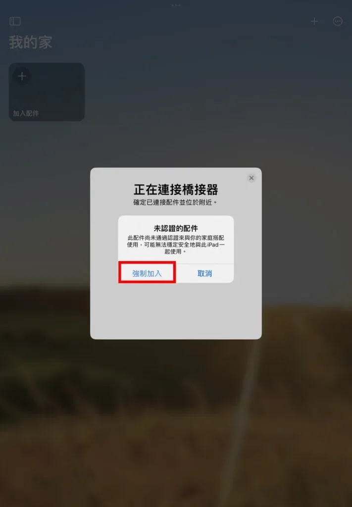 接著將橋接器加入「Apple家庭」,並強制加入位認證的配件